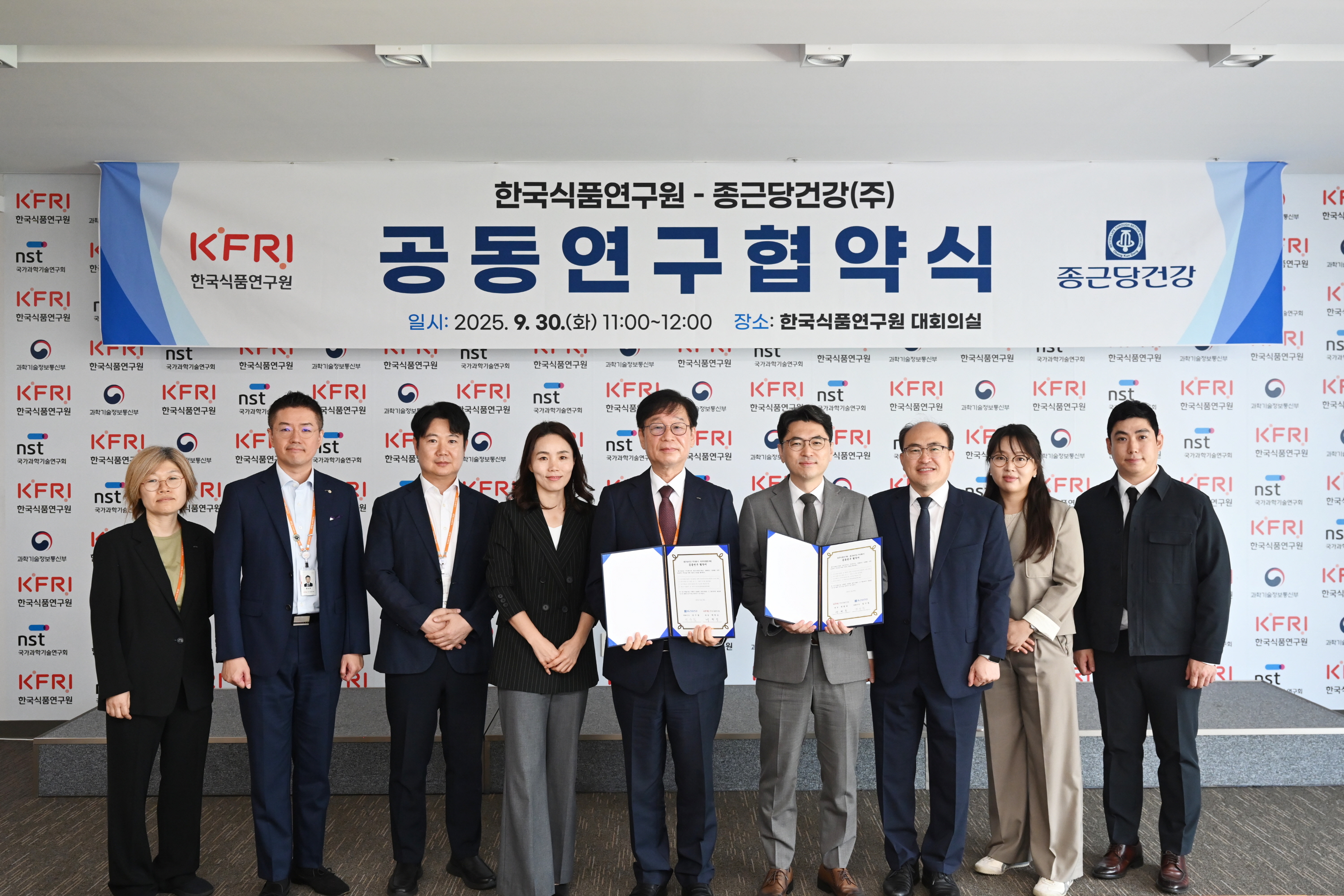 2025년 9월 30일(화), 연구원 대회의실에서 종근당건강(주)와의 공동연구 협약식이 있었습니다.